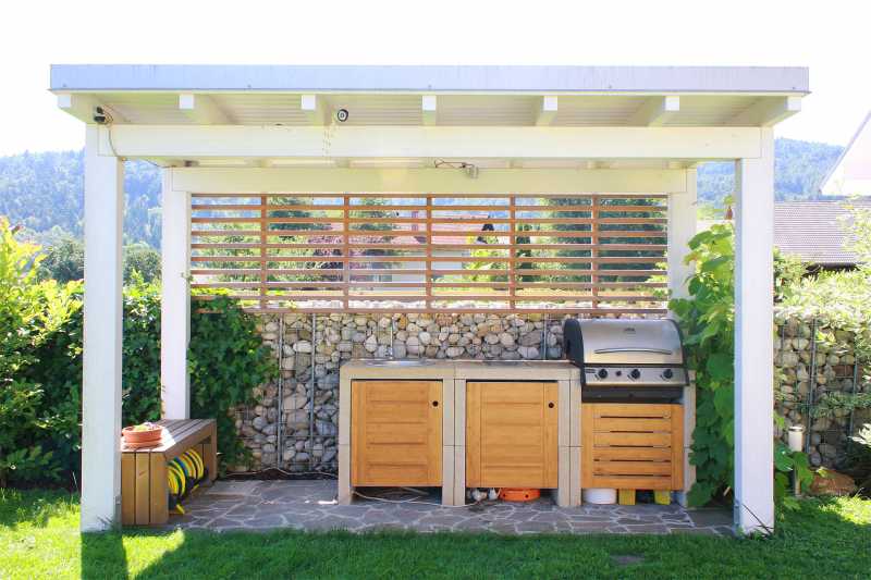 Sve više vremena provodimo u zatvorenim prostorima, zato kuhanje vani − pod nadstrešnicom ili na otvorenom predstavlja pravi gušt. Roštilje, kamine, krušne peći ili klasične štednjake moguće je dopuniti još s mini smočnicom i hladnjakom. Ne smijemo zaboraviti i na vodu i odgovarajuće osvjetljenje.