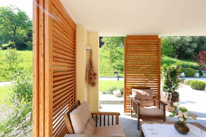 Sunce nas na terasama u različitim godišnjim dobima i različitim dijelovima dana prati pod različitim kutovima. Horizontalna krovna sjenila omogućuju nam pogled na prirodu, dok nam vertikalna sjenila uz zaštitu od sunca pružaju i privatnost. Drvena pomična stropna i zidna sjenila Mizarstva Kos, na sajmu Ambienta u Zagrebu, su primjela pohvalu "Mobil Optimum 2017" – proizvodi garantirane kvalitete.