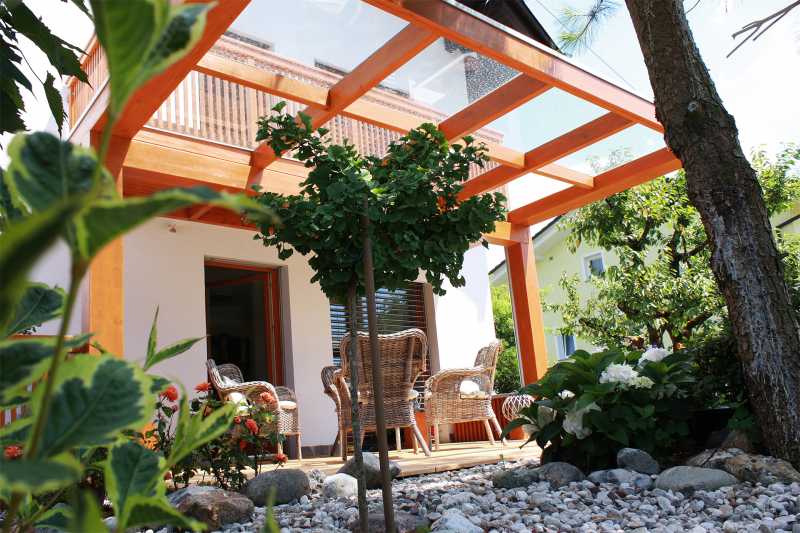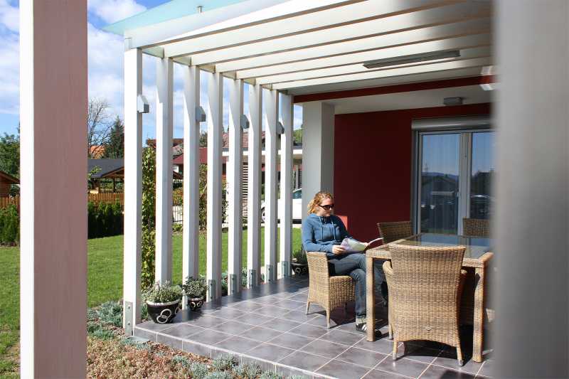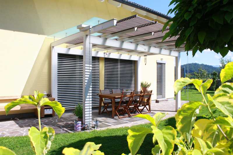 Pergole za terase povezuju unutrašnjost kuće i vrt. S njima se prostor bivanja i druženja poveća, posebice zato jer nam omogućuju da na vrtu i svježem zraku uživamo u različitim vremenskim uvjetima. Ispod njih svoj prostor mogu naći blagovaonica, vanjska kuhinja, sjedeća garnitura ili kutak za djecu. Po mjeri projektirane, izrađene i obrađene konstrukcije pridonose skladnosti s arhitekturom kuće i vrta.