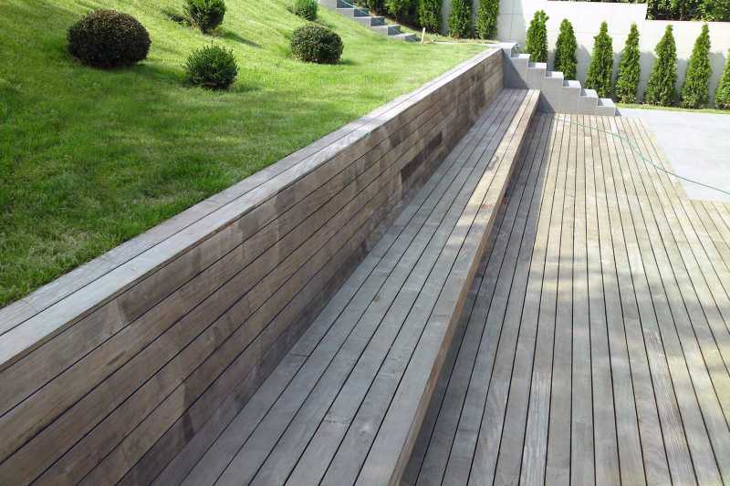 U tom smislu koriste se sve vrste drveta, u nešto širim profilima radi brže postave. Najčešće od 10 do 20 cm. Što se tiče estetike, ako je terasa odmaknuta od kuće, nije potrebno obraćati pažnju na svaki detalj, što će pojeftiniti terasu. Ipak, na izboru drveta ne treba štedjeti, pa je važno koristiti najbolje materijale.